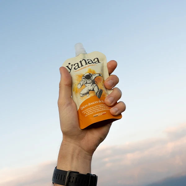 La purée énergétique Épices Douces de Madras de Yanaa offre une recette salée inédite : pois chiches, huile d’olive extra vierge, sel de Camargue et un savant mélange d’épices curry doux, cannelle, et aromates.