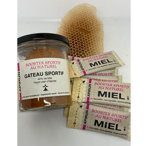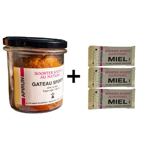 Ce pack contient : 1x Gâteau Sportif Prêt à Manger 3x Sticks de Miel Le gâteau sportif, concentré d'énergie naturelle. Prêt à consommer, avec des matières premières naturelles et française. Fort apport énergétique, Haute digestibilité, Glycémie Optimisée, sans additifs ni...