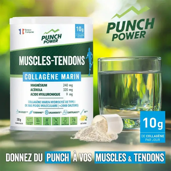 Étirements, torsions musculaires, courbatures et raideurs sont des signes de fatigue musculaire qui peuvent impacter votre performance sportive et votre bien-être quotidien. Pour soutenir la fonction musculaire et réduire la fatigue, Punch Power a développé une formule complète à base de Collagène Marin sous forme de poudre.